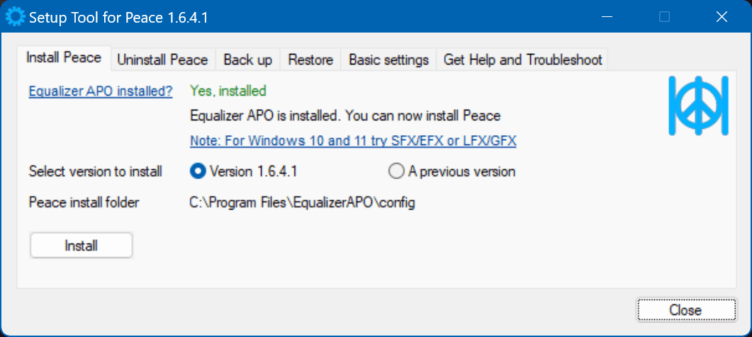 And that’s it! Now that the installation is complete, we can configure Peace and Equalizer APO.